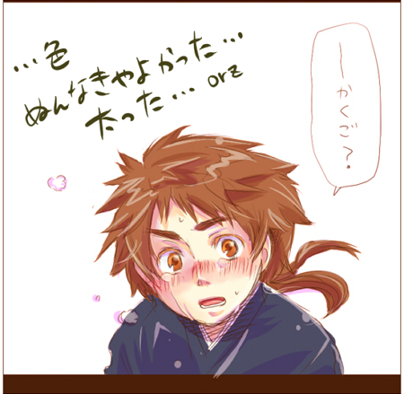 もうお前またかよ、な感じなので深くは言いません。な、何もしてなかったわけじゃないんだ!久しぶりのAPHオフ会でスケブは描かせてもらってきたんだぞ!うぅうすごく苦しい・・・ですが、ふと見たら何枚か過去のスケブ絵をスキャンしてあったので、直近のものとあわせてうpしてみました。みんなシャーペン+水彩クレヨンです。ほんとに自己流なので教わりたい・・・こいつの正しい使い方を・・・ あと、相変わらずはまってる戦国BASARA熱で漫画を描きはじめたらsaiがもう限界だよというくらい縦長のものになってしまい、こちらにこっそりのせるにはあまりに存在感のあるものとなったので、mainのその他ジャンルにぶっこんできました´p`ややややべえぇえ本気で武田主従妄想しすぎた・・・!!↑とりあえずこんなんです。 あと、続きから本当に遅すぎて多分、皆さんのほうが忘れている頃だと思ってならないのですが、拍手コメントへの・・・お返事です・・・本当に・・・なんとお詫びしたらよいのやら・・・!!(涙) 停滞中にも拍手下さった皆さん、本当にありがとうございます><マイペース過ぎて恐れ入ります・・・! >8/23 グレンラガンとのパロをご提案下さった方v すごく・・すごく遅いアクションで誠に申し訳ございません。ま、まだ来て下さっているのだろうか・・・! その節は暖かい拍手コメントをありがとうございます!!グレラガ、実はまだ最後まで見ていなくてみんなに「もったいない!」と怒られているような状態なのです(笑)が、とにかくニアが可愛くて!大好きです///しかしヘタとマッチングさせようとしたとき、今まで考えたことがなかったためにうっかりイタちゃんでやっちまいました・・・はい、折角のキャラ指定をうっかり忘れてしまっていて・・・!イギニア・・・それだよ・・・すごく・・・萌えます(ゴクリ)また今度リベンジさせてくださいっ;; こんな緩い管理人ですが、頂いた応援を励みに頑張りますvありがとうございましたーっvv >9/1 にゃんこさん にゃんこさぁああん!大変遅くなって誠に恐縮ですが、先日はお祝いコメント、誠にありがとうございます! おかげさまで初めてのグッコミとともに私もひとつ年をとり、その割にますます落着きの無い(特にヲタク的な面で)大人に仕上がっているような気がしなくもないですが、このパッションを大切に頑張りたいと思っていますwwそして、4コマ芋漫画も見てくださってありがとうございます///夏コミのペーパーで描いたものだったのですが、とにかくヴェストが描きなれていなくてorzあんなデフォルメなのに顔がすごく・・・偽者です(涙)そして出しているW不憫本もすごく偽者すぎて本当にお恥ずかしいのですが、今度ぜひ、にゃんこさん宅にお送りしてもよいでしょうか? せめて個人誌を一冊だしてからお伺いしたかったのですが、遅筆ゆえになかなか予定通りにいかなそうだったので、今このタイミングでお聞きしてしまうことに・・・うぅ、なかなか格好のつかない管理人ですみません´Д`; ギルエリは絶対頑張りたいところなので、そこは冬コミを目指したいと思います!と思いつつもついつい、最近は手が勝手にPS2のコントローラーを握っては戦国武将にうつつを抜かしている状態で本当にしょうもないのですが(滝汗) こ、今後とも何卒よろしくお願い致しますっ!>//<ではでは、いつも暖かい拍手、本当にありがとうございます! PR COMMENTSCOMMENT FORM TRACKBACKSTRACKBACK URL |