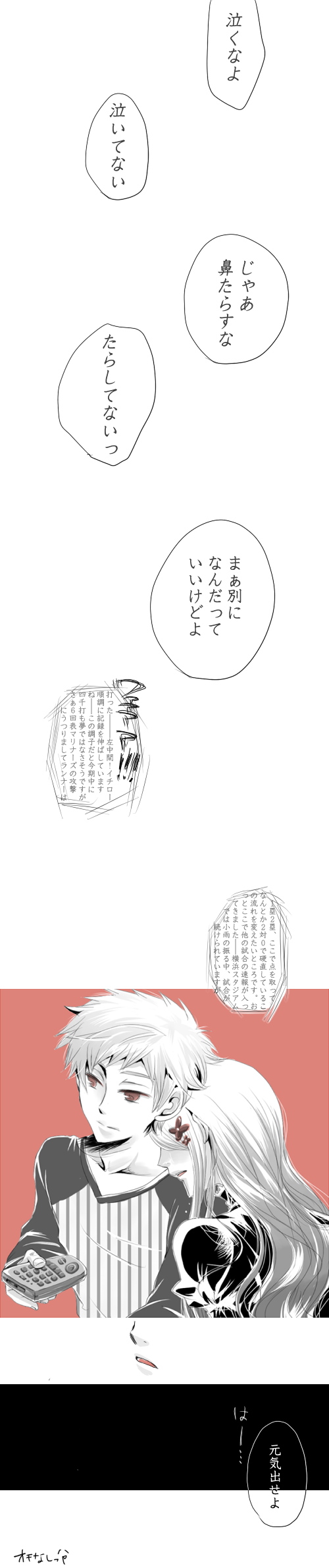 そして最後に絵を反転させるのを忘れて分け目が逆というね!も~しょうもないミスをしてしまいました´p`言わなきゃばれないかと思ったけれど、なおいたたまれなかったのはこの間の捏造漫画でも同じミスをしていたからですギャボーorzというか、言わなくても既にばれていたとは思いますが、自分で懺悔して残り少ない良心を守らせて!そんなわけで先日、いつも仲良くしてくださる「あしたの風」の九里さんから素敵なギルエリネームをいただきましたvうぉおこれを私が描いてもいいのか・・・!?///よーし全力で頑張りたいと思います^//^ギルエリ>サークルカット>己の原稿くらいのパッションで間違いないですよね。うん私がんばる! 少女マンガですが何か^p^ |