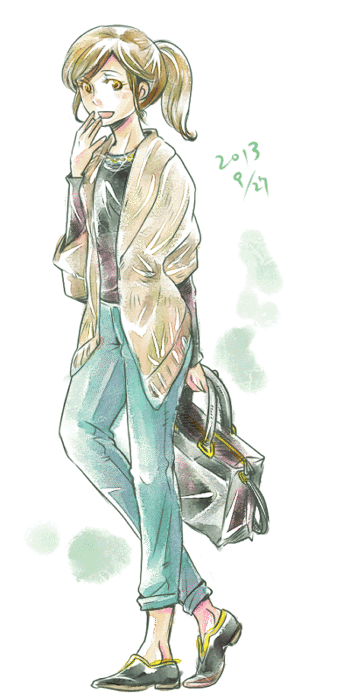拍手ありがとうございます。いただいたものにお返事したくてそわぁそわぁしているのですが、しつこいかしらと思い直してもぞぉもぞぉしていたりもするので、ある日突然いらぬお返事をしていたらすみません、先に謝っておこう・・・ネット上でも奥手で困る。 今日はふと思い立ったのでお洋服の話なぞ。 管理人の今日の仕事服キリエちゃん。 実はわたくし、センスはないんですが洋服を見たり試したりするのが好きで、こういう季節の変わり目にひとシーズン先の洋服の通販冊子などが届くと穴が開くほど見る癖があったりします。で、このバッグかわいいなぁあとかこれ意外と使えたなああというどうでもいい感想を言いたくなったりするのと同時に、自分のようなオタクさんが「普段こんなの着てます☆」とか見かけたりするとけっこうな勢いで拝見してたりするので、自分のがそう役に立つとは到底思えませんが、せっかくの自分日記なので思いついたが吉日、思うがまま語ってみたいと思います。ということでお時間よろしければ続きから(^ω^) 絵だと全然目立たせられなかったんですが、一番「おっ、これ買ってよかった!」と今日、思ったのはネックレス。短めでぶっといじゃらじゃらネックレスをよくみかけて気にはなっていたんですが、ちょっと難しいような気もしつつ悩みに悩んで買ったのがアーバンリサーチの紺色ネックレス。全部金属じゃなくて土台がベロア地で、そこにゴールドの金具とクリアな石が一周ぐるっとついたやつでちょっとお高かったんですが( ;∀;)今日、千円ちょいの黒いロングTシャツにあわせたら流行りのつけ襟みたいに映えてあらあら、これはインパクトあって使えるなぁと感動したのでした。真冬はタートルニットにもよく映えそうです。 あと個人的に今季、いいなと思ったのはピーチジョンのカラースキニーパンツ。体力気力ともに緩みきっているここ数年、スキニーはとんと穿かなかったんですが、口コミの評判がいいので物は試しと試着してみたらこれがまあよく伸びて履きやすい。そしてむちむちしすぎずスリムに見える(気がする)←自己満足大事 この系統はユニクロをはじめどこでも似たようなのは数多売っていると思うし、4,900円とすごく安いわけでもないのですが、この履きやすさと見た目はなかなかないぞと思い深緑と明るい黄色の二本買いをしてみました。買ってないけど黒も色効果が手伝ってスリム効果を倍増させてくれそう。白もほしいんですがブランドがブランドなだけに透けそうかななんて・・・と多色買いを考えるくらいには気に入っています。細身のパンツをお探しの方にはぜひこちらのお試しをおすすめしたい。 参考までに上に着たのはベージュのざっくり変形カーディガン。靴はぺったんこの黒靴に黒鞄です。今日は長袖の上着じゃないと朝晩ちょっと寒かったな・・・!春と秋は上着に悩ましいわたくしです・・・。 PR |