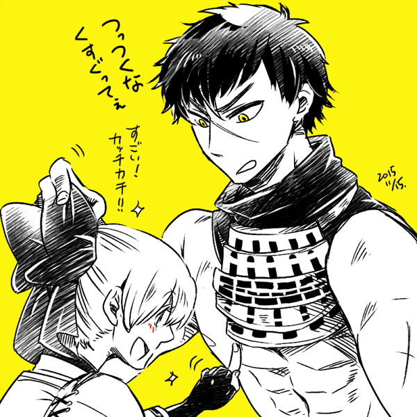大慌てでかいた炎山くんであれですが、新年を楽しみにする心持で一枚。 いつにもましてネットへの浮上率が低いのですがお絵かきもオタクもやめられているわけがない、とりあえず最近はベヨネッタを黙々とやっています。すごくたくさんコンティニューしながらも生きてます、冬。 というわけでTwitter上では愚痴の言いたさにすでに呟いてしまいましたが、妊娠中でございます。無事に生まれても先は長ーいと思いますが、しばらくはこちらも放置になるのか逆に更新が増えるのかまったく読めないので今しばらくは残しておく方向で・・・ ではではよい年末年始をお過ごしください~健康第一! 11月これにて拍手ありがとうございます、うちのサイトではほんとにレアすぎていただくといまだに震えます、ありがたやありがたや・・・!
