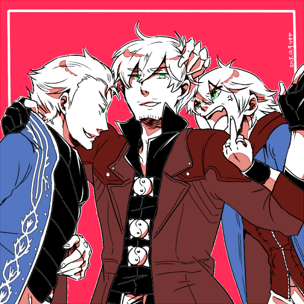 遅ればせながら先日のスパークに参戦された皆様、お疲れさまでした。宣言通り栞さんのスペースで見事に根っこをはっていた私です。その節は栞さんと世羅さんに本当に本当にお気遣いいただき誠にありがとうございます、このご恩は忘れません・・・! おかげさまでノクマニ本が完売となりまして、今は重版をかけたDMC3本のみ通販にまわしております。ご覧いただければ幸いです。 スパークで買わせていただいた本ではわりとこの3人の印象が強くて、気付いたらこんなラクガキになっていました。自分の息子だと気付いていても気付いてなくても普通に喧嘩をふっかけていそうな見た目だけクール脳筋半魔の鬼いちゃん、格好良かったですね!(脳内スクショ) いきてます色々と低浮上ですが生きてますひっそりと。
