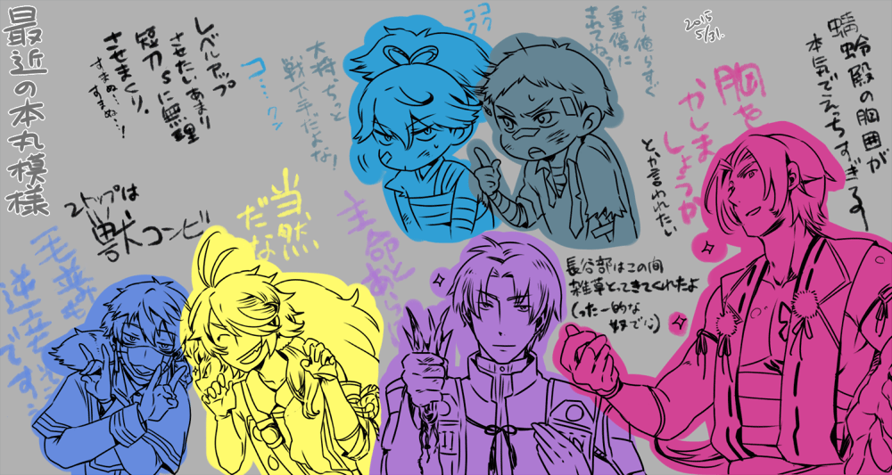 また返信不要だったかもしれませんがメール下さいました件、続きから返信させてください・・・すごーーーく嬉しかったですありがとうございますっ・・・!! 遅ればせながら巷で大人気のとうらぶを始めてみました。ブラウザゲームって初めてで「もう歳だしマニュアル読むのめんどいしなんとなくでできるかな」とか「ハマりすぎて廃人になりそう怖い」とか色々緊張しつつ昨日、ようやく重い腰を上げたのですが結論。 めっちゃ楽しいですねこれすごい気楽www と草も生える勢いでゆったりと楽しんでいます。あとは廃人にならない程度に適宜、休みをとってやるよう心掛けるだけです。大人だから大丈夫でしょ(震え声) デビュー2日目で今のとこお気に入りを集めると上のような面子になりました。言いたいことは山ほどあるのですがとりあえず、長谷部強くな~れ、が今の私の願いです。 つづきはこちら 再販について拍手ぽっちありがとうございます。仕事で打ちのめされた後に発見すると猛烈な勢いでエネルギーチャージされています(´;ω;`)ブワッ