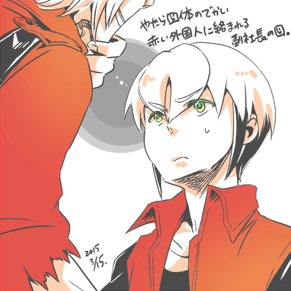 5月あわせではありましたが、今月出来ていないとほぼアウトだったので終わって本当によかった・・・あとはミスがないことを祈ります。 終わった解放感で赤い二人その2↓ なんだろうこの二人、思い付きから描きはじめたんですけど描いてるとすごい幸せになります・・・今まさに私の中できてるんだな、うん・・・(*´Д`)ハァハァ とりあえず本を出す予定はこれにて完了です。仕事次第でもし時間ができるようなら次はカラーばっかりの本にしたい・・・などと見果てぬ夢を申しており。 通販について拍手ありがとうございます。とりあえず表紙ができました。
